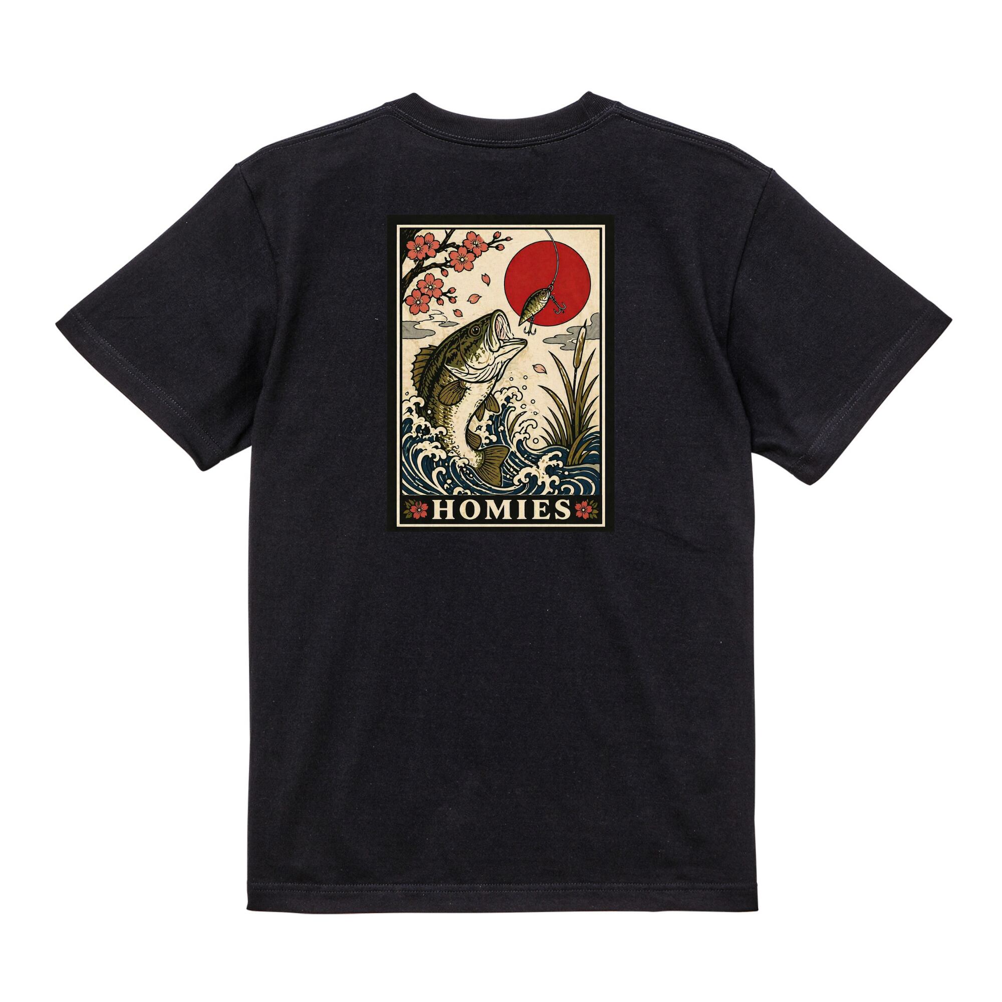HOMIES(ホーミーズ)- #7 BASSHUDA 桜×日の丸×ブラックバス 5.6oz T-SHIRT 花札 和 桜 ユニセックス